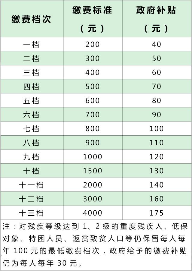 当前实施的缴费等级分为13个,参保人员可以自行选择,详细情况如下: