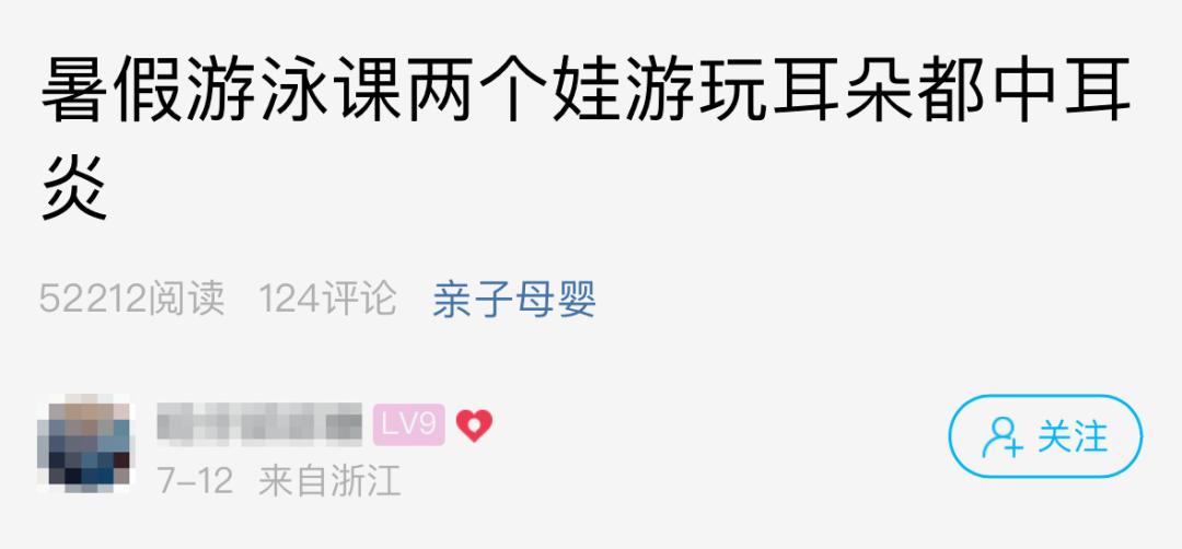 近日,杭州萧山一父母在当地论坛发帖。她给两个宝宝报了暑期游泳班。第一次体验课回来,女儿耳朵内膜发炎。医生说是游泳引起的,暂时不能游泳。