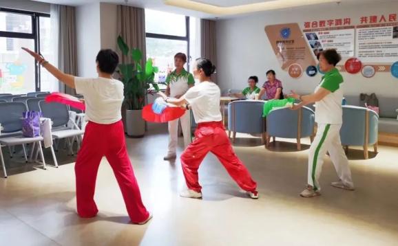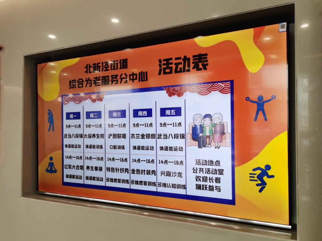在位于平塘路155号的北新泾街道综合老服务分中心,公共活动室开着凉爽的空调,老人们要么编织羊毛,要么训练木兰扇,要么三两聊天,非常愉快。活动室每周一至周五开放。武当八段锦、太极养生、沪剧联唱、红歌合唱、木兰金银扇、健康拳击练习、时装秀等活动非常丰富。