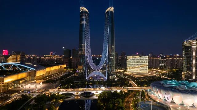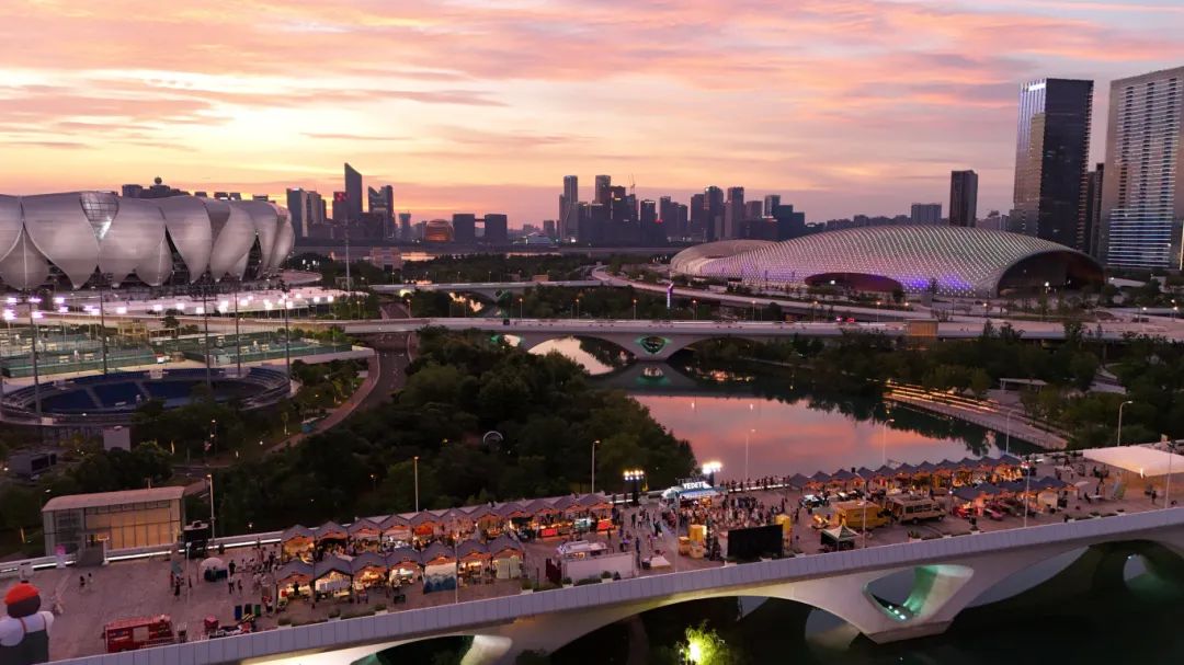 从日落开始,钱江世纪公园彩虹跑道的喧嚣就开始了