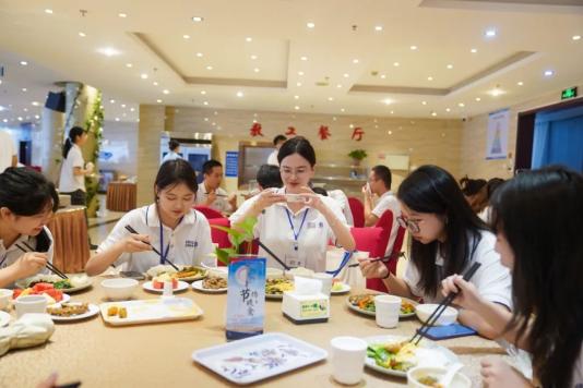 每餐有两道甜点、四道凉菜和六道热菜,还有汤、粥和糕点,营养搭配和营养搭配。户外有一个凉爽的平台,学生可以每天交换清爽的材料,包括电能、文化创意冰淇淋、宜昌老式特色虾和各种饮料。