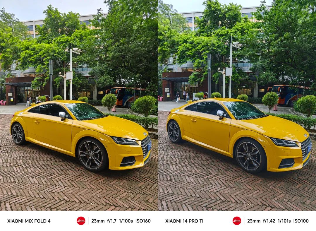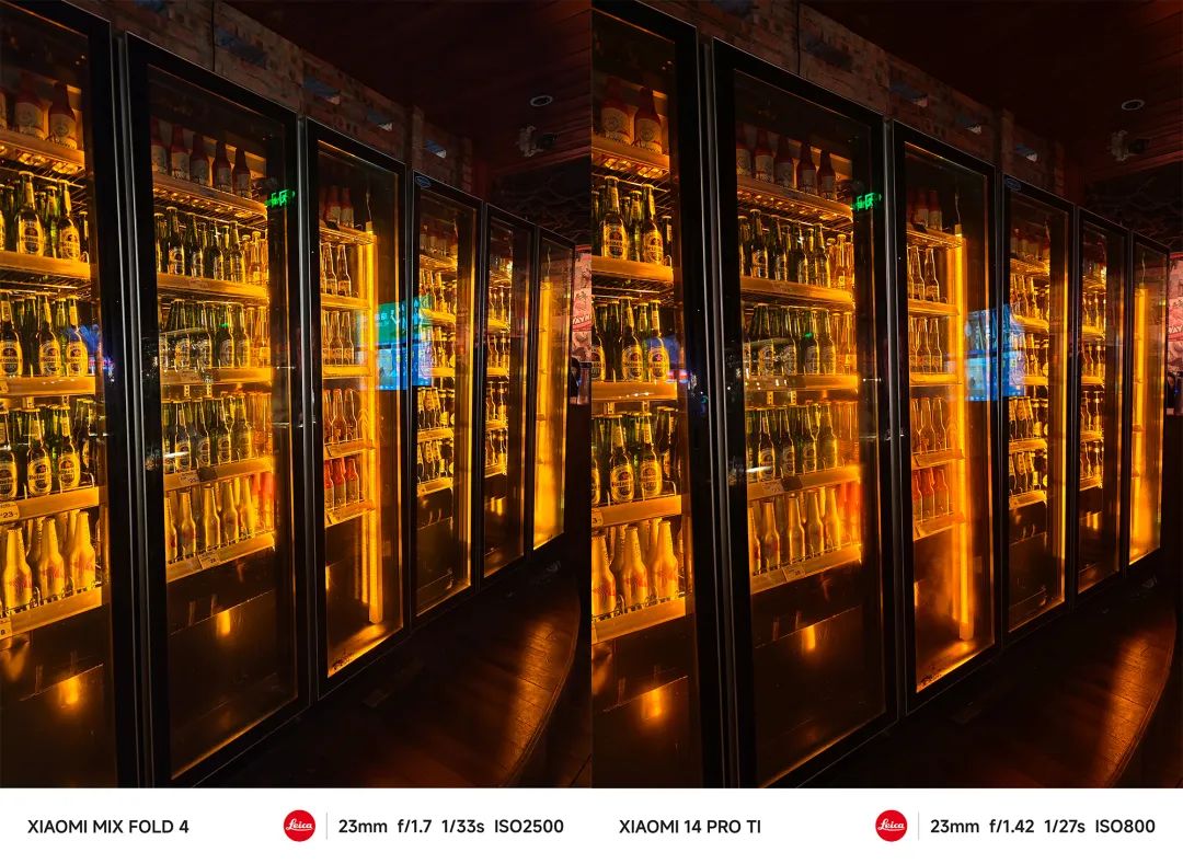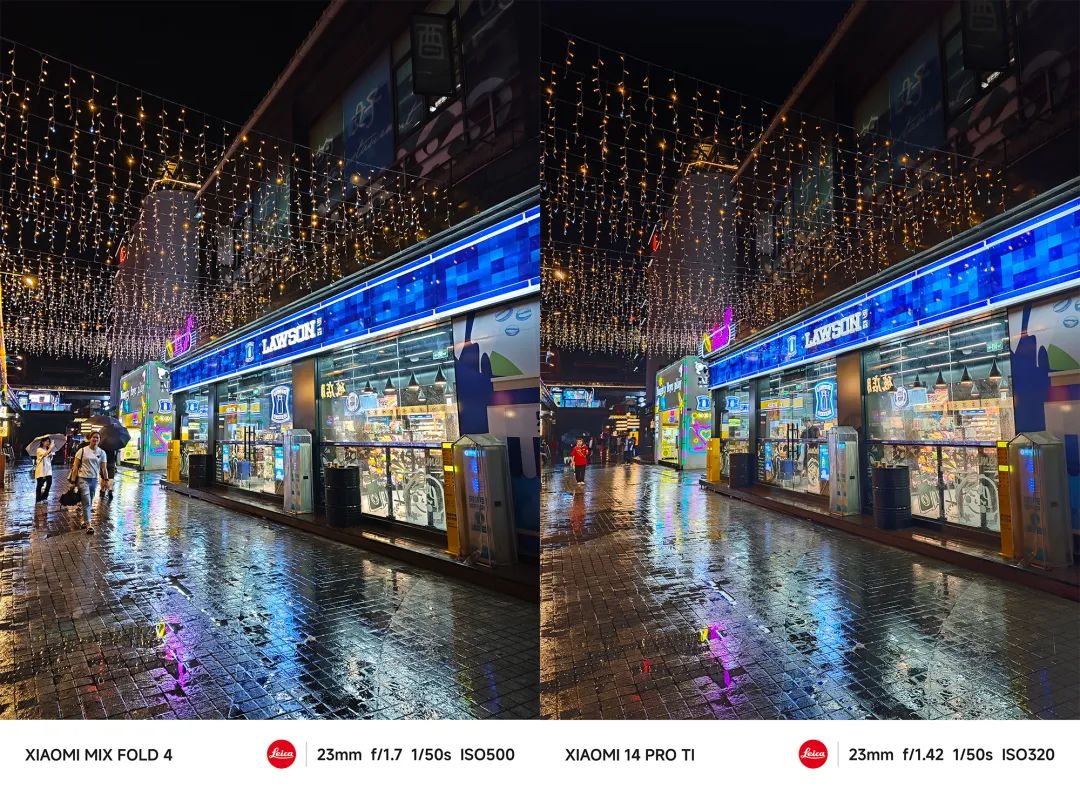 MIX Fold4 这次还是采用了徕卡光学,主摄是 1/1.55 英尺光影猎人 800,比不了 14 Ultra 一英寸,但是可以和 14 Pro 简单对比一下。
