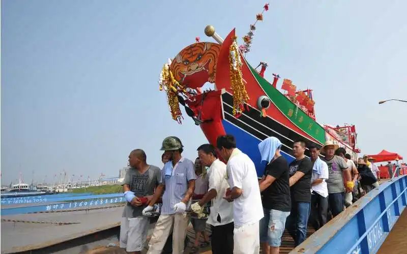 大暑送“大暑船”活动在浙江台州沿海已有数百年的历史。“大暑船”严格按照以往三桅帆船的缩小比例建造,船上载着各种贡品。活动开始后,50多名渔夫轮流带着“大暑船”在街上行进,鼓声喧天,鞭炮齐鸣。随后,这艘“大暑船”被拖出渔港,在海上点燃,让它起起落落,祝大家五谷丰登,生活健康。