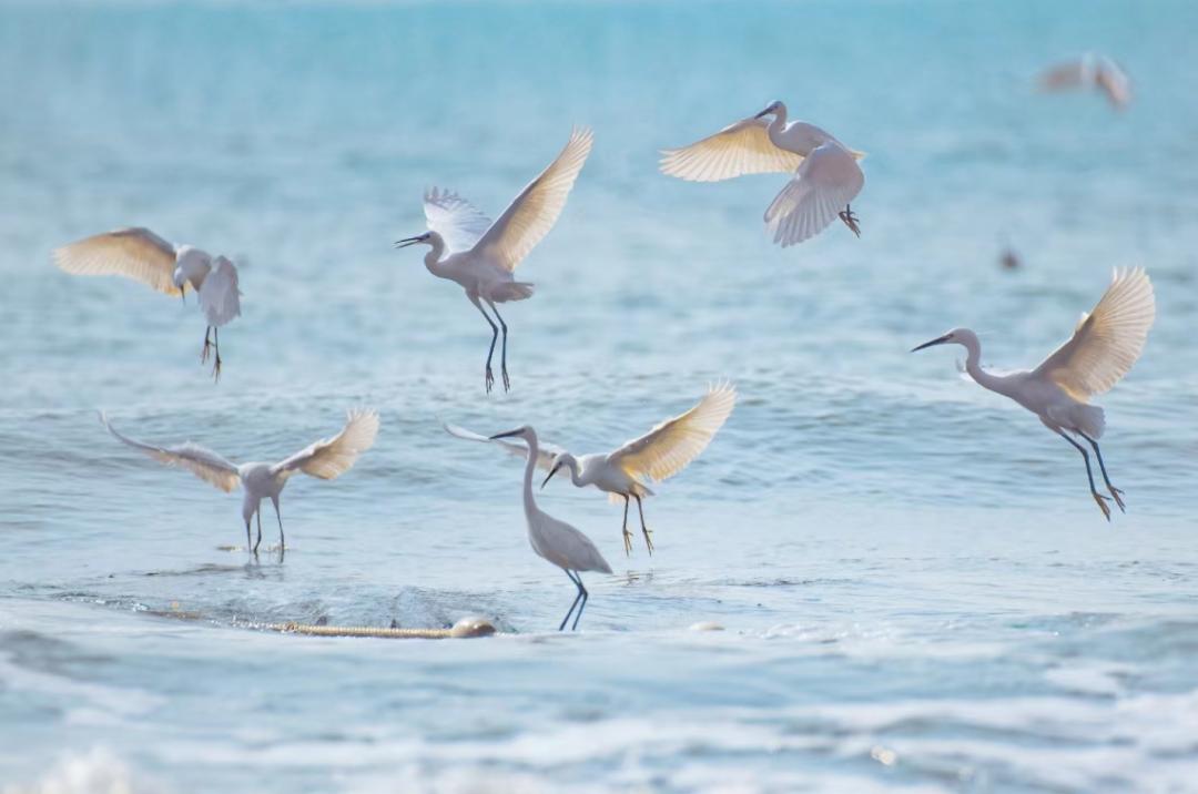 2018年,水东湾红树林保护区被广东省林业局评为“广东省十大观鸟胜地”之一。晚上,夕阳落在树梢上,绿色和白色被点缀。“夕阳与孤独齐飞,秋水长天一色”的美景吸引了无数游客打卡。