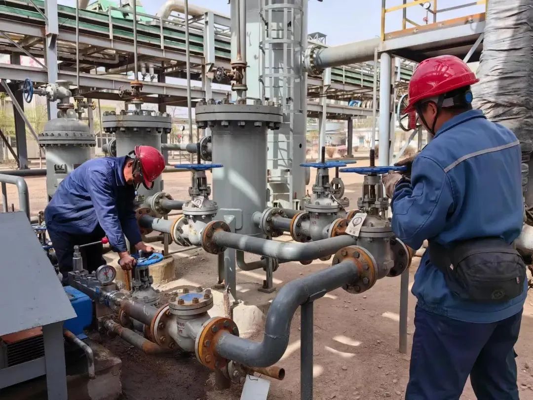 △金化集团丰盛公司员工在净化工区进行半水煤气超滤维修