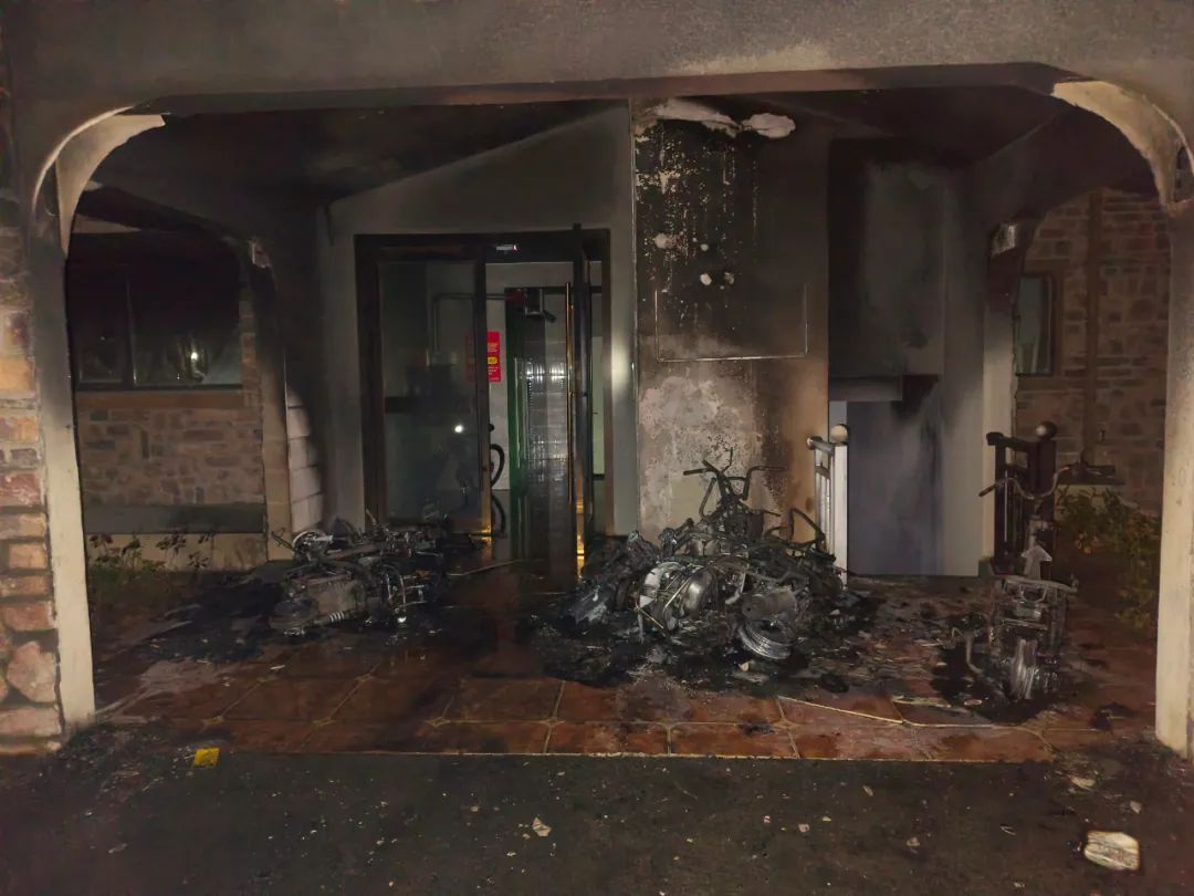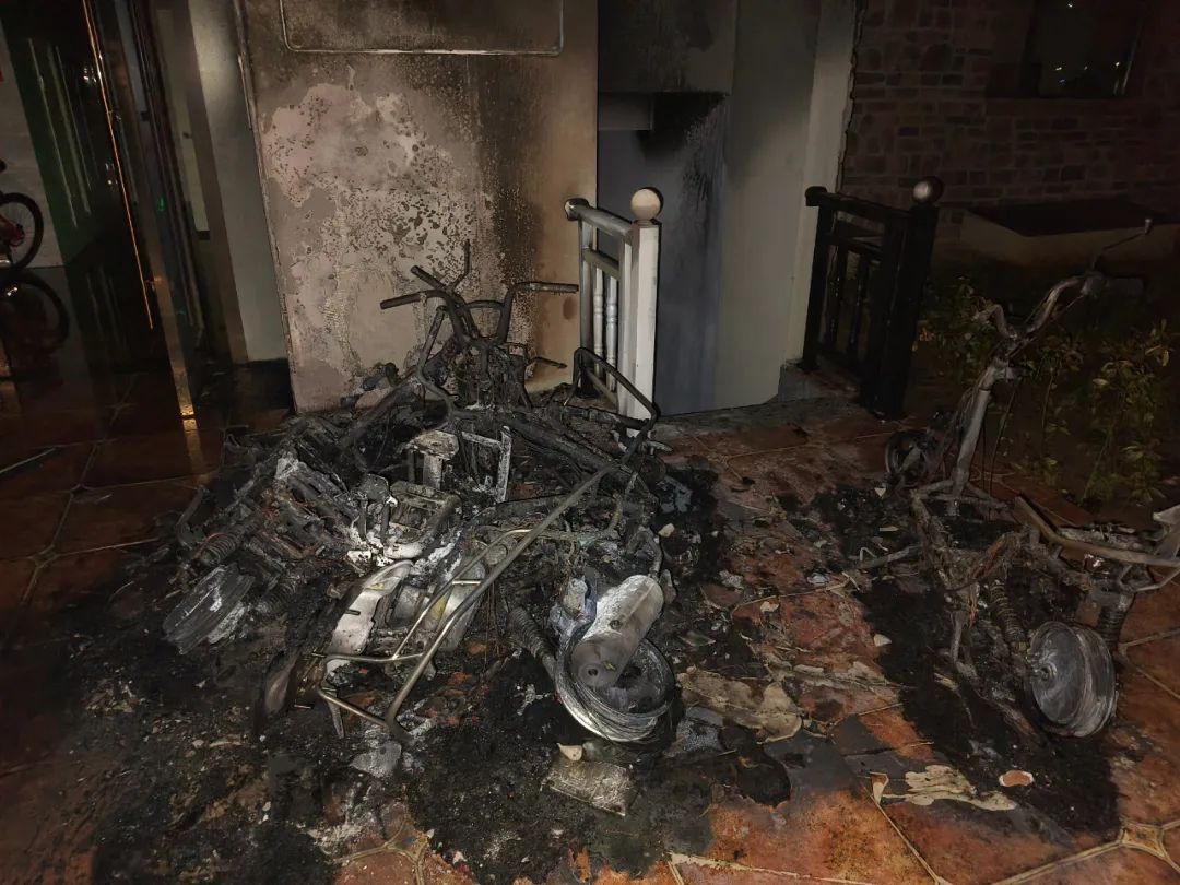 点燃多辆停在这里的电动自行车