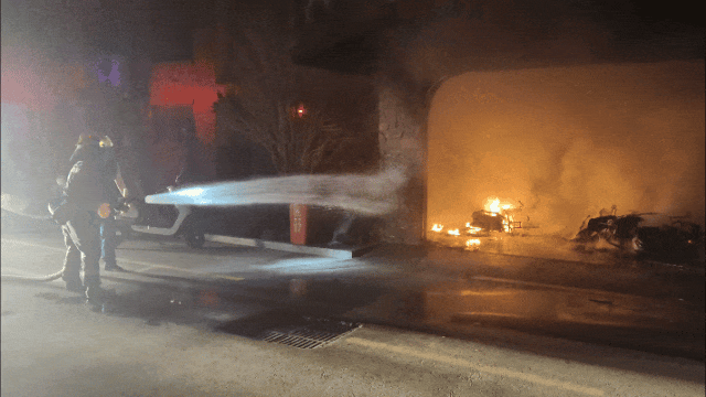 在监控过程中,可以听到车辆燃烧时“噼里啪啦”的声音