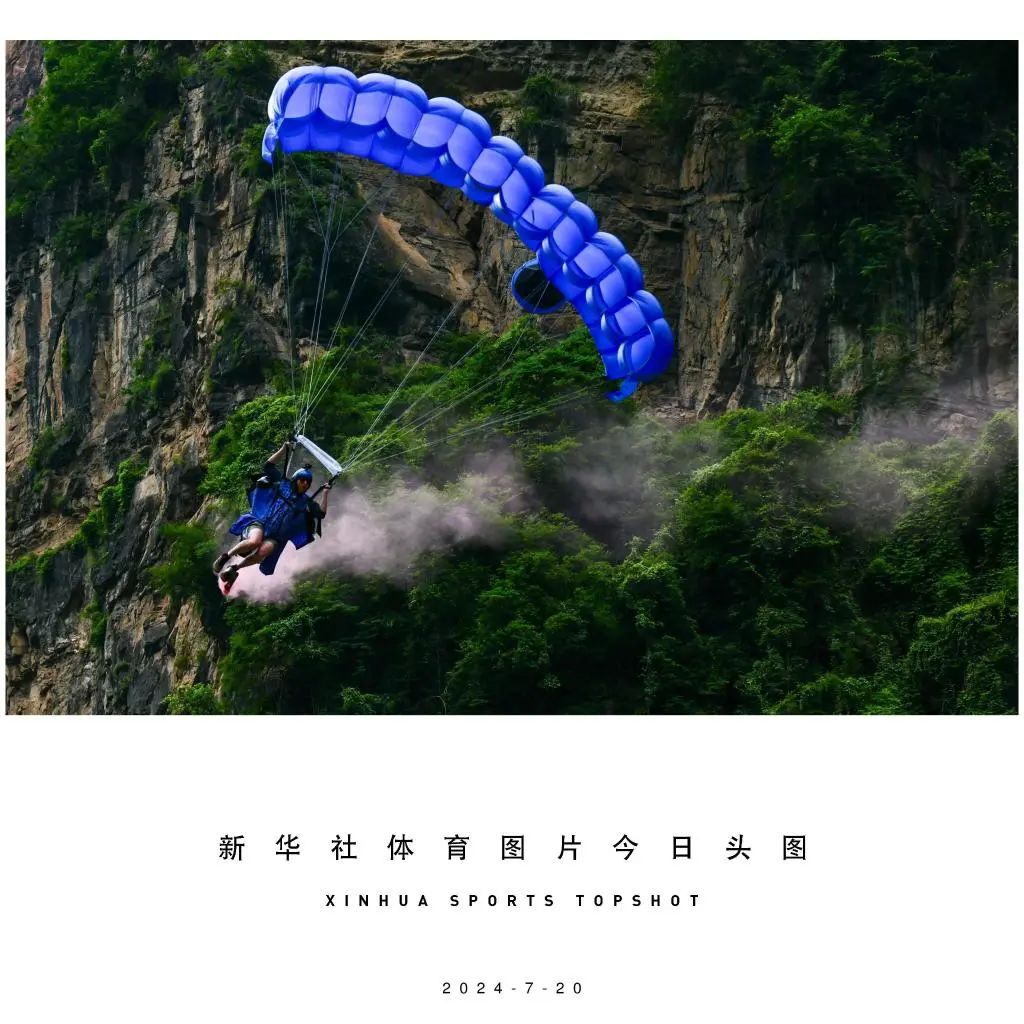 上面的图片是7月20日,一名翼装飞行员准备着陆。