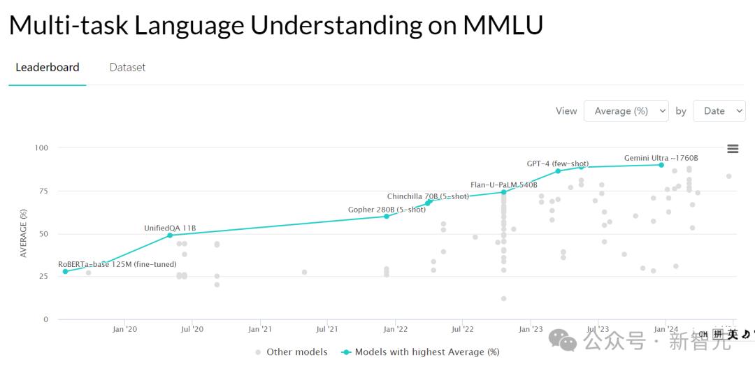 这种经过完美训练训练的GPT-2可能在大规模多任务语言逻辑中进行训练(MMLU)测试分数会略低。MMLU测试包括初等数学、美国历史、计算机科学、法律等57项任务。用于评估大模型的基本知识覆盖面和理解能力。