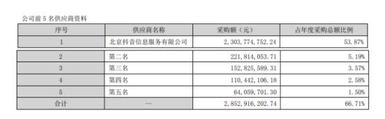 根据远望科技的财务报告,2023年,远望科技向北京抖音信息服务有限公司支付的采购金额高达23.04亿元,占公司全年采购总额的53.87%,几乎消耗了其半壁江山的利润。与此同时,直播佣金作为公司的主要收入来源,在当时同比下降了24.19%,毛利率下降了-0.38%,这意味着远程科技的直播业务不仅未能为公司带来利润,还需要面临额外的财务损失。
