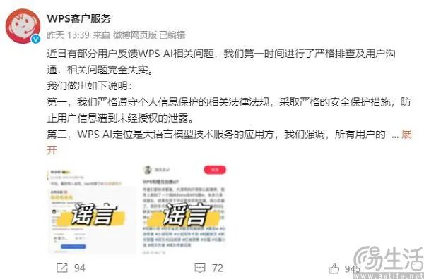 经过一个周末的发酵,一家互联网制造商将用户未公开的数据私下授予的“丑闻”呼之欲出。所以,WPS客户服务官微很快就站出来辟谣,“最近有用户给WPS反馈 与AI相关的问题,我们在第一时间进行了严格的调查和用户沟通,相关问题完全不真实。此外,WPS还强调,没有与字节跳动旗下的豆包AI进行任何AI合作,也不会有AI训练中使用的相关文档。