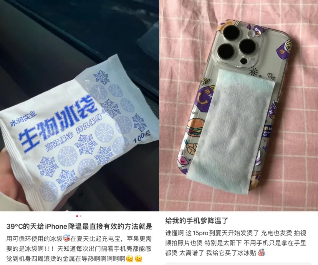 然而,冰贴等“神器”可能不安全。有网友说:“我用冰袋外包一层毛巾给手机降温。今天官方售后服务告诉我,主板会进水。”。