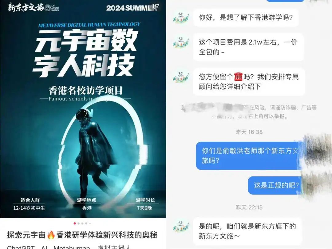 与此同时,客户服务人员表示,该项目由新东方文化旅游推出,安全可靠,无隐形消费。