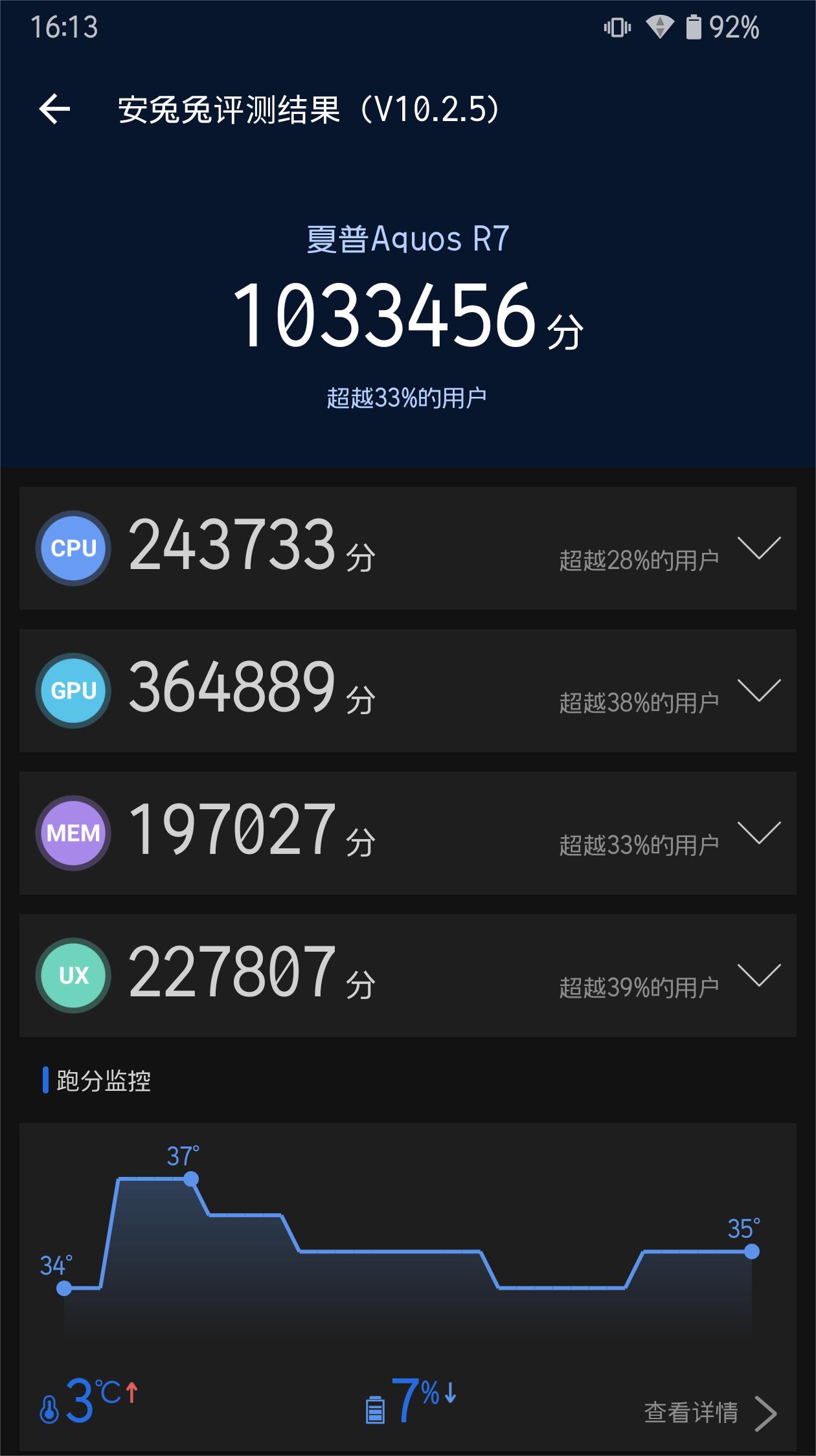 夏普Aquos是2022年上半年发布的产品。 R7很自然地使用了当初流行的旗舰芯片,它在安兔兔中跑出了103万分的“惊人”高分。