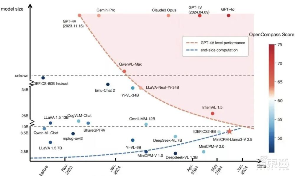 随着端侧芯片性能的提高和模型知识密度的提高,端侧设备的本地运行模型越来越大,越来越好。现在GPT-4V可以在端侧运行,刘知远预测在接下来的一年里,GPT-3.5水平模型可以放在一边运行,在接下来的两年里,GPT-4o水平模型可以放在一边运行。。