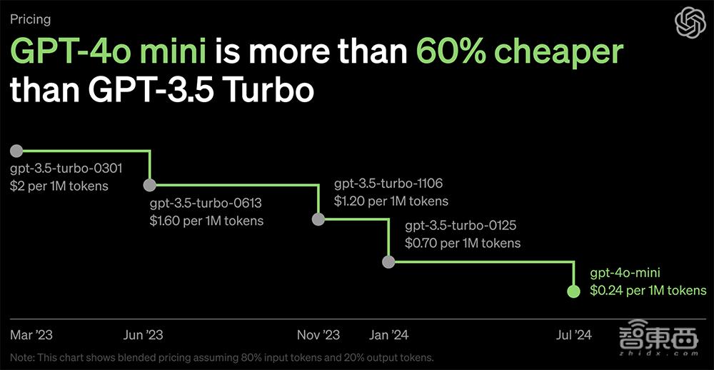 苹果也从去年开始研究能够更好地适应手机的端侧模型。OpenAI,一直走粗放暴力扩张路线,是一个相对意想不到的新人。上周,轻量级模型GPT-4o mini,代表大模型一哥主动走下“神坛”,开始适应行业趋势,试图用更便宜、更容易获得的模型来煽动更广阔的市场。