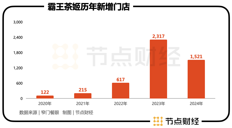 从2023年开始,霸王茶姬的扩张速度翻了一番,仅今年就有超过2000家门店。