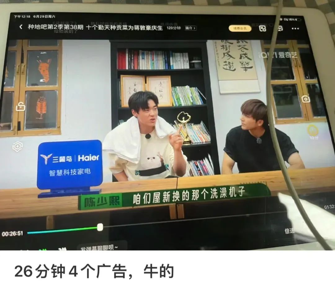 到了第二季,有观众吐槽广告太多,“26分钟4个广告”,平均6分钟一个。