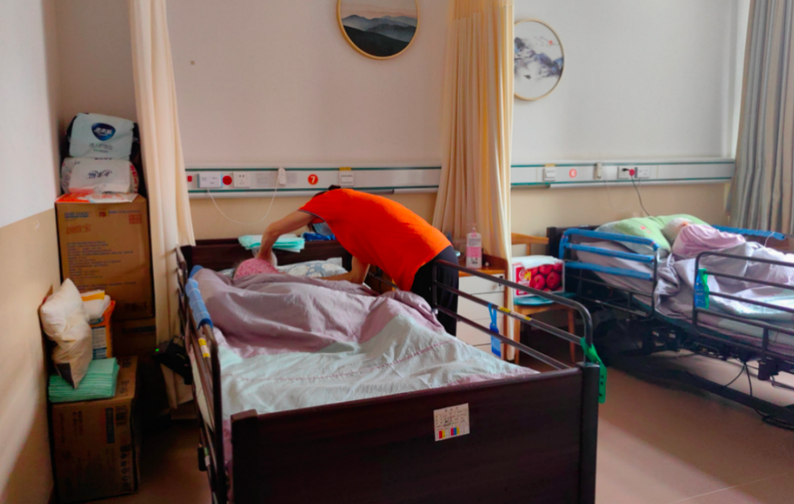 晚上关灯后,晚上的护理措施还在继续。刘万春说:“晚上,护士要给残疾老人翻身、喂水、换尿布。残疾老人的护理通常每2小时一次。但也有特殊情况。比如老年人生命体征不稳定,就要随时观察。发烧的老年人需要每半小时测量一次体温。”