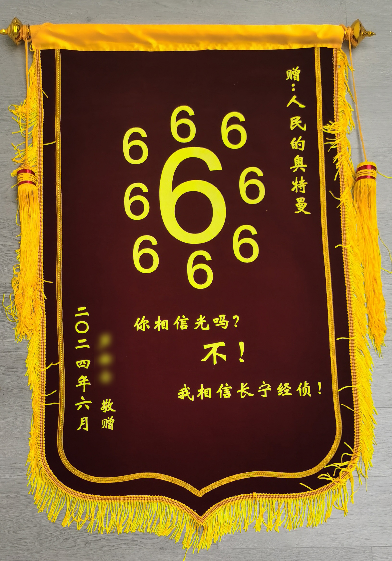 上海市公安局长宁分局今年6月收到一面赠送给“人民奥特曼”的横幅。