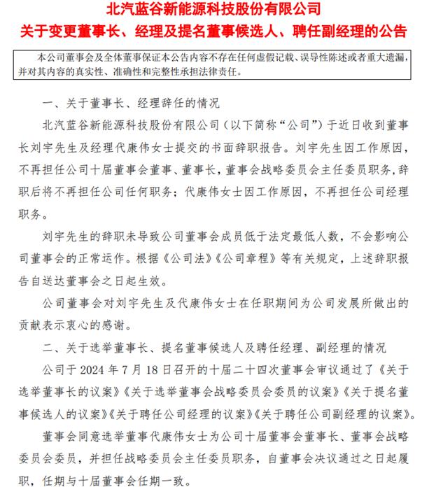 北汽蓝谷公告截图
