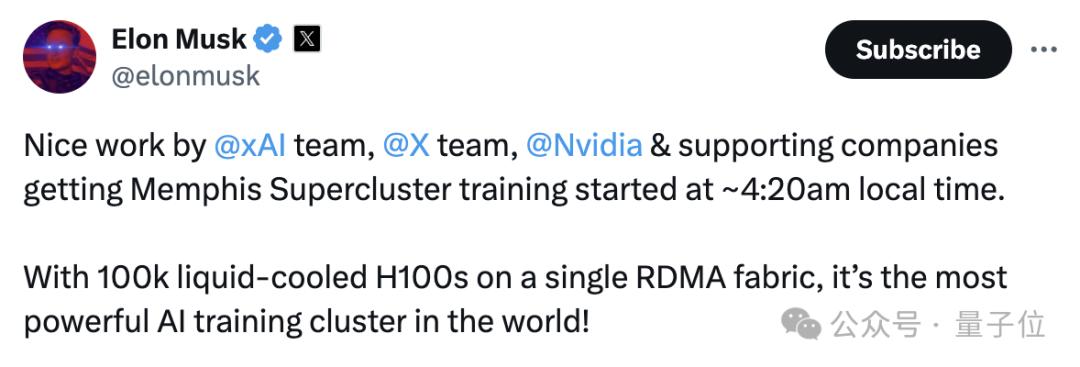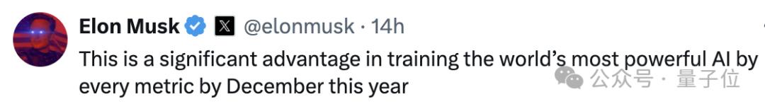 与此同时,马斯克补充说,这一集群的建成,为今年全球最强模型的训练提供了巨大的优势。