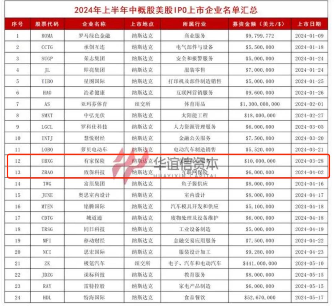 图2:来源:华谊信资本资本,2024年上半年美股IPO上市公司名单: