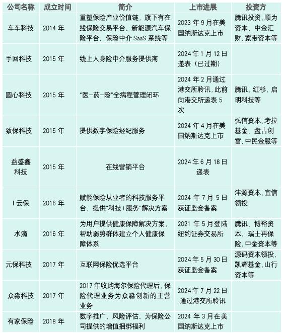 图1:近五年来已上市及拟上市保险中介公司列表,来源:根据公开资料整理