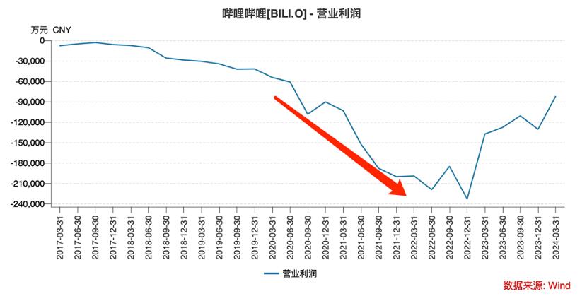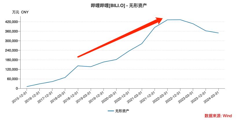 2022年以后,哔哩哔哩内部进行了一系列大刀阔斧的改革,比如在游戏中,OGV(专业机构创作视频)以及影视版权等方面降低成本,裁掉冗余低效业务,无形资产到此告别高速扩张。
