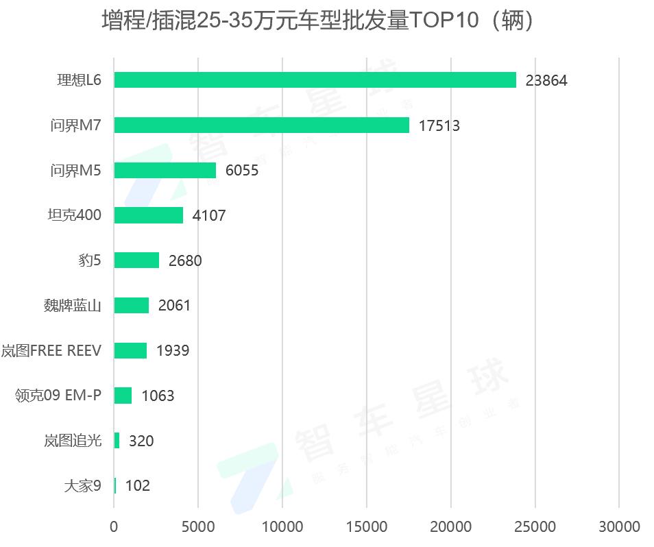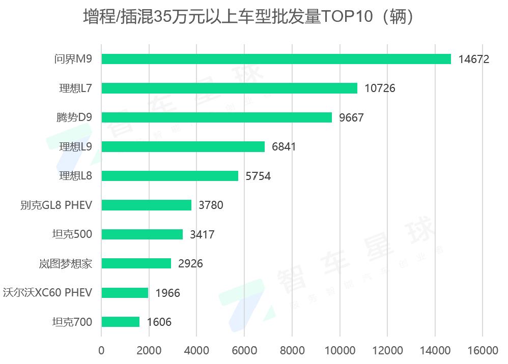 但是在35万元以上的混合动力市场,几乎是两个产品的“战场”,即问界和理想。
