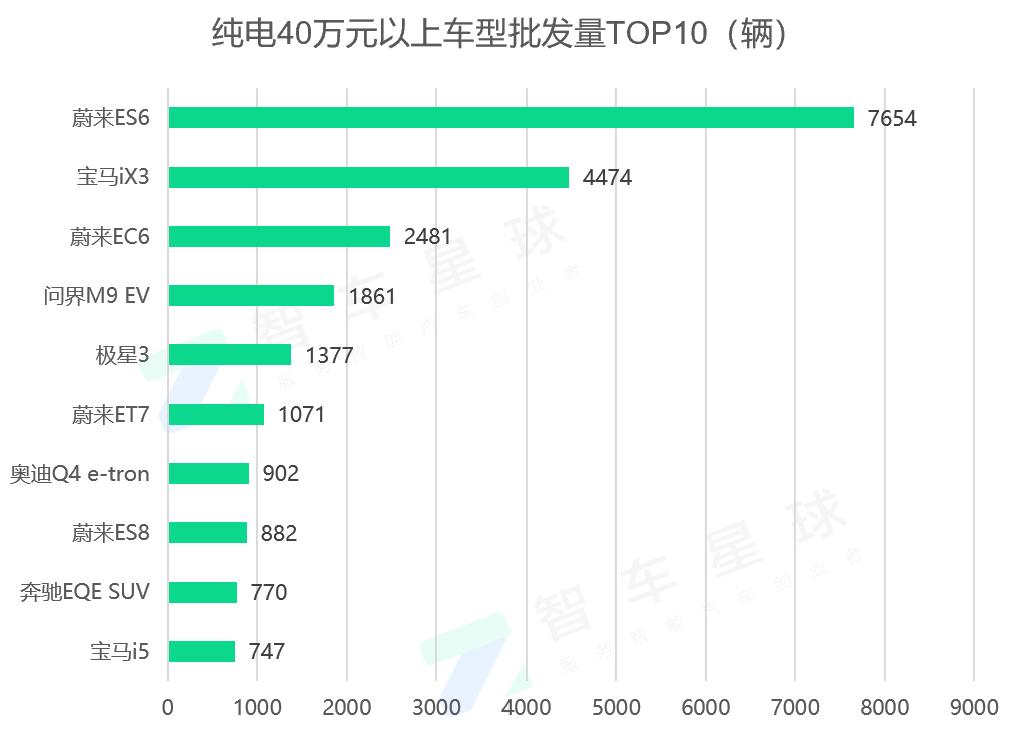 唯一变化较大的是宝马iX3,与5月925辆车的批发相比,6月份批发增长了383.7%。