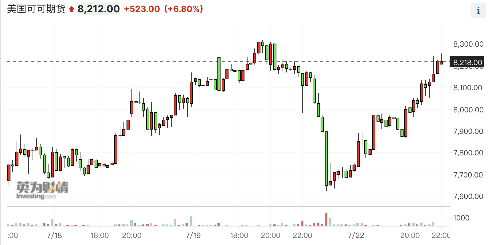 由于主要生产国加纳计划限制下一季度部分供应,再次引起市场对供应短缺的焦虑,纽约期货市场周一大幅上涨近7%。