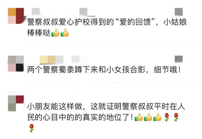 警察叔叔也暖心地蹲下。
