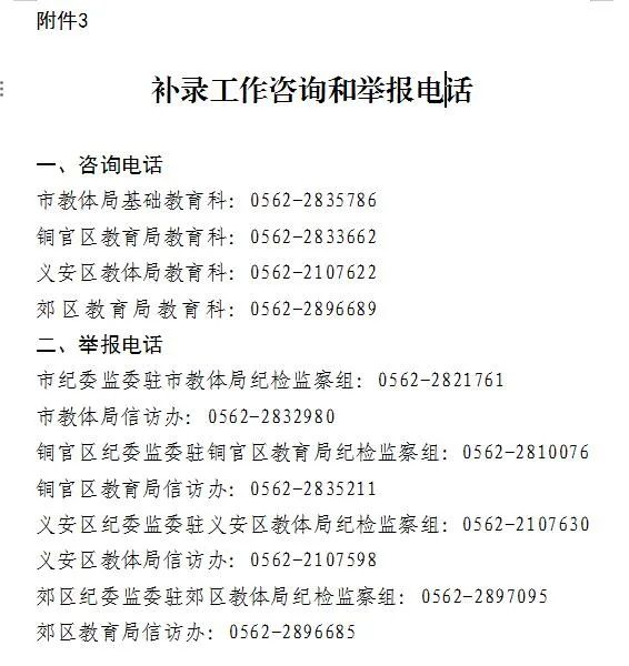 第一,组织实施:计划未满高中的补充工作由市教育体育局组织实施。铜官区、义安区、郊区教育主管部门组织本辖区初中考生志愿填报工作,市初中组织本校考生志愿填报工作。