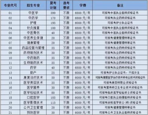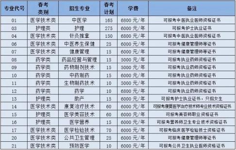 中医、中医、护理、针灸推拿、中医骨伤、中医保健、健康管理、药品管理、药品制剂技术、中医制药、生物制药技术、药学、助产、康复治疗技术、医疗美容技术、医疗营养、医学检验技术、口腔医学、医学影像技术、公共卫生管理、预防医学