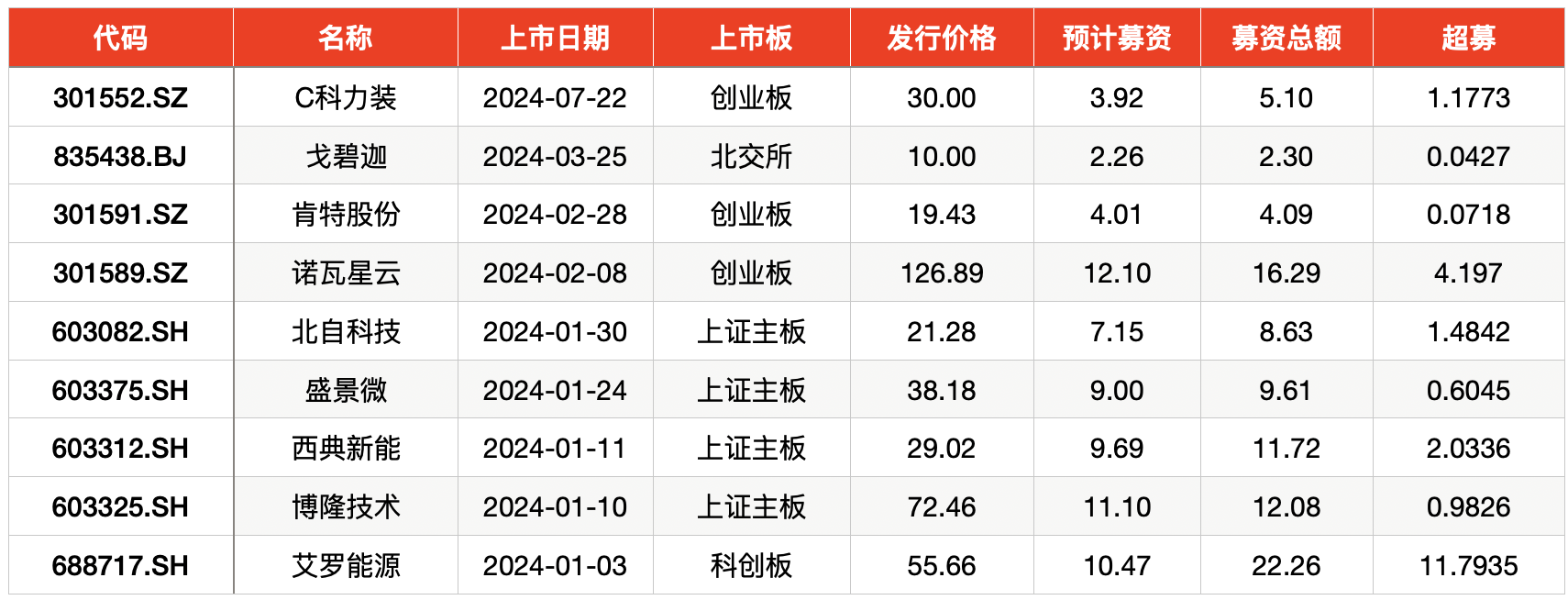 根据Wind数据分析,截至今年7月22日,该报已有48只新股上市,目前只有9只新股超募。除了科力装备,今年第一季度还发生了其他8只超募新股。