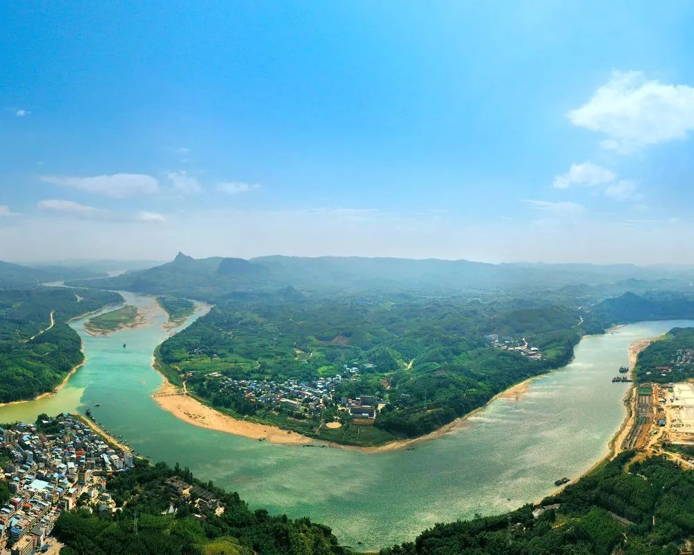 接下来是龙头湾的尖角河湾——甫角湾。鹿寨县江口乡有近200年的历史。2023年11月,甫角屯占地约1200亩柳州江口港投入使用,是柳州7个港区中最大的物流中转港。