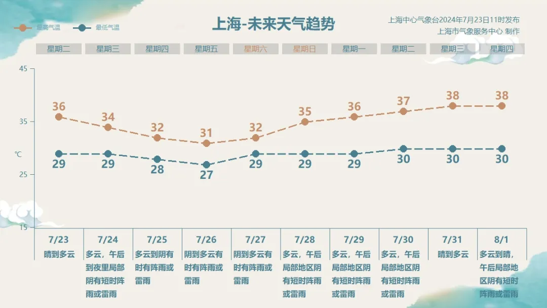 上海的高温将会降低:台风“格美”主要影响周四至周六,风大于雨。