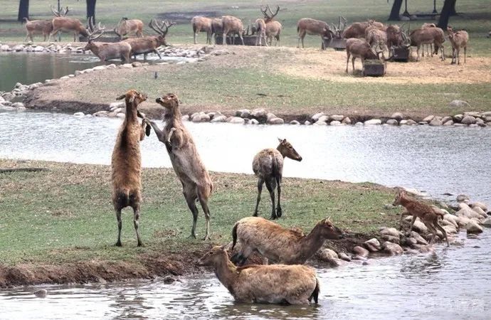 这儿的麋鹿不能喂食——它们都在保护区,需要像意大利炮一样长的长焦,才能拍清楚。