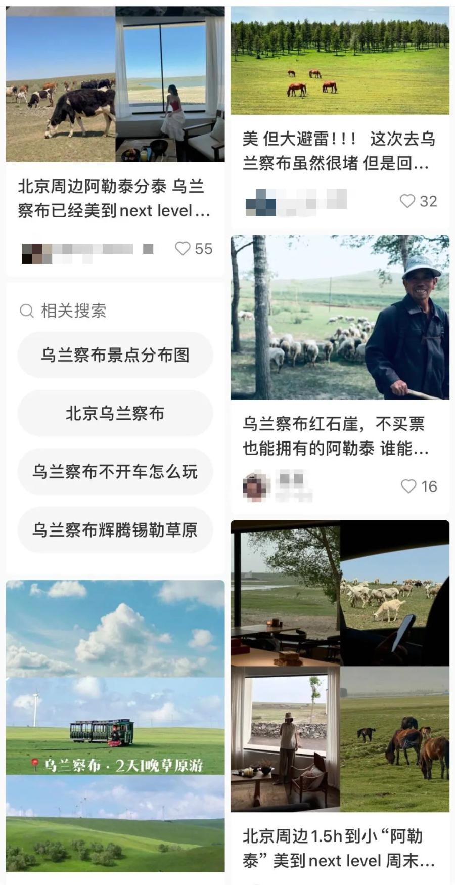 如今,在乌兰察布的笔记中,黄花沟草原逐渐取代乌兰哈达火山成为封面,博主们脱下宇航服,穿上长裙:阿勒泰到了。