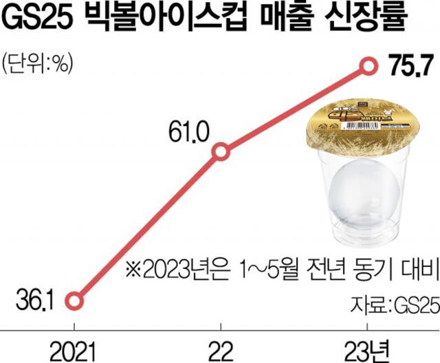 2020年,韩国头部便利店GS25推出big ball ice cup (大球冰杯),冰,顾名思义,里面有一个圆形冰块,直径7厘米,棒球大小。