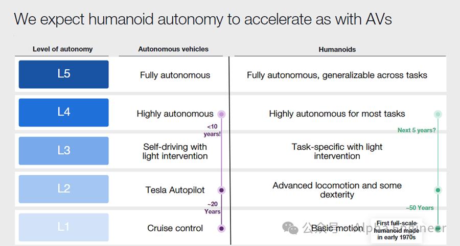 从L1到L2,人类机器人已经使用了大约50年,从L2到L4估计只需不到5年。