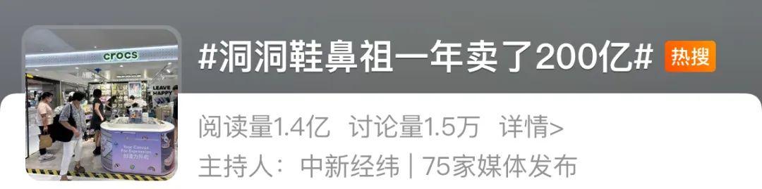 不久前,孔洞鞋创始品牌Crocs宣布:洞洞鞋在2023年为企业创造了30.13亿美元,相当于218.48亿元。