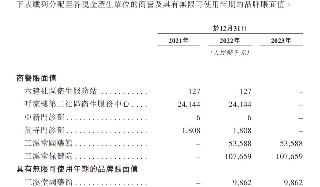关于收购产生了很高的声誉,报告期内同仁堂医养的声誉分别为2608.5万元、1.87亿元、1.61亿元,其中三溪堂收购约1.61亿元。