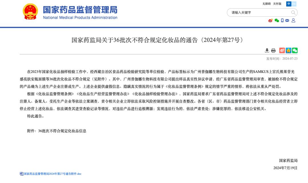 根据《化妆品监督管理条例》、《化妆品生产经营监督管理办法》和《化妆品抽样检验管理办法》,国家美国食品药品监督管理局要求广东省美国食品药品监督管理局依法对不符合化妆品要求的注册人、备案人、委托生产企业进行立案调查,命令相关企业立即采取风险控制措施,依法进行自查整改。