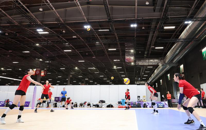 中国女排到达法国后,前往卡昂接近一周的训练。25日上午,全队从卡昂乘车到达巴黎约3小时。入住奥运村后,当天下午,他们去了南巴黎试验场1号馆的比赛场地进行训练。