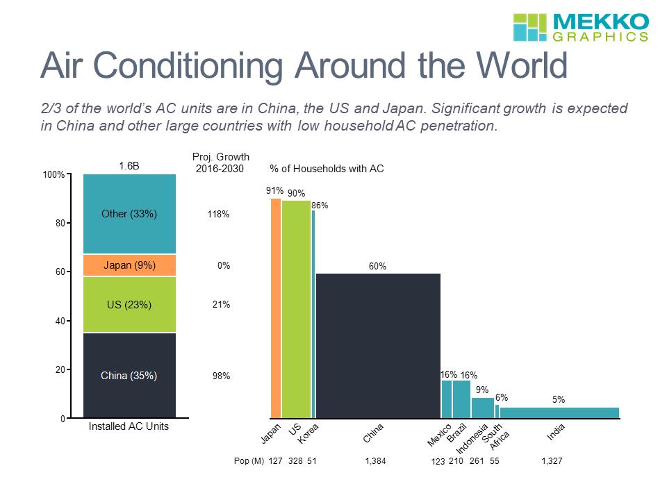 世界上当代空调的分布并不平衡,它集中在美国和东亚。