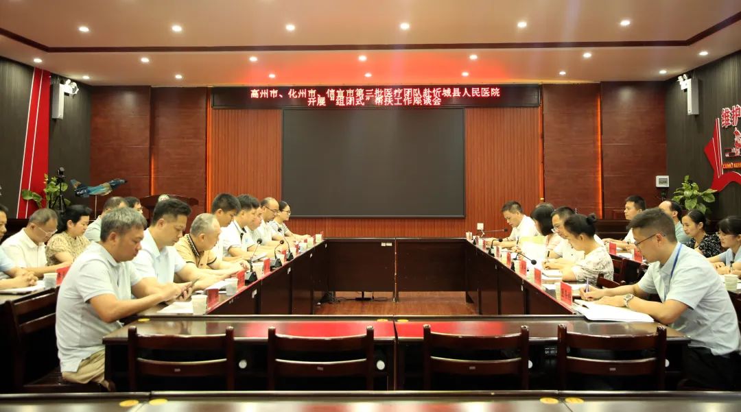 7月25日,高州市、化州市、信宜市第三批医疗团队赴忻城县人民医院举办团体帮扶座谈会,加强医疗人才团体帮扶学习交流,全面提升忻城县医疗服务水平。