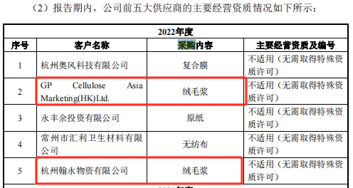 2)杭州翰永物资有限公司及GP Cellulose Asia Marketing (HK) Ltd.,都是公司原料绒毛浆的供应商,所以一块分析。
