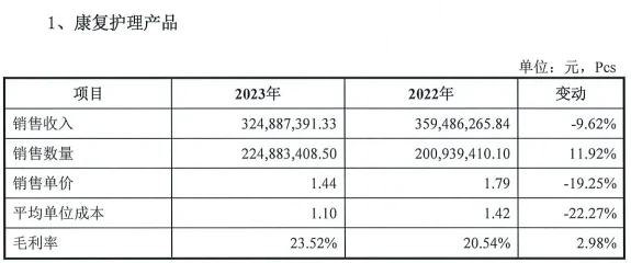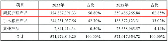 但是需要注意的是,当大客户Medline集团的合作额度从2022年的4.1亿元增加到2023年的4.2亿元时,爱舍伦的康复治疗产品收入却同比下降了9.62%。